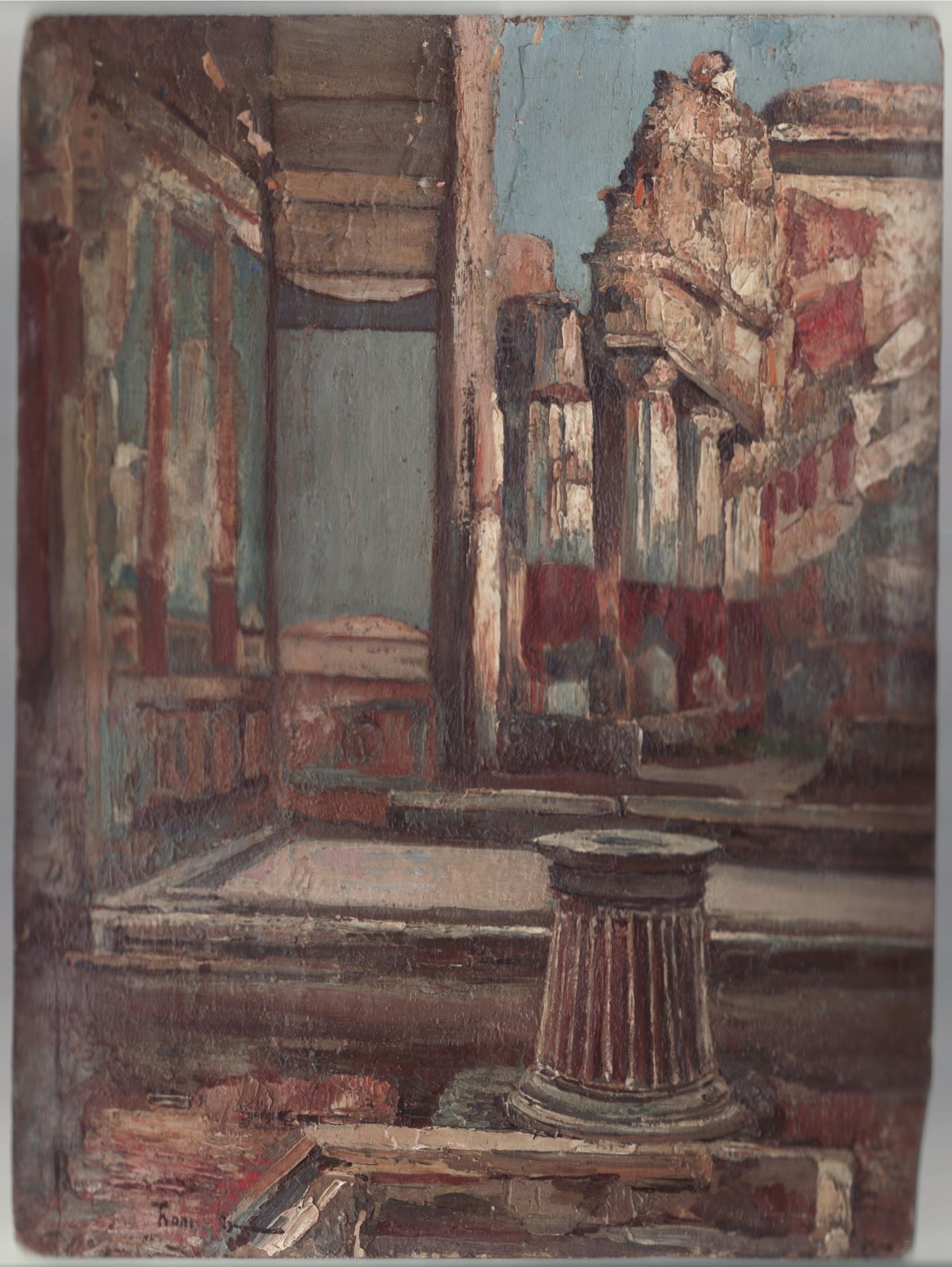 Скорее всего, Вы правы (см. вложения, где изображена т.н. вилла Лара в Помпеях). Верхняя надпись четко читается как "Pomp...". Если бы был Рим, то было бы или "Рим", или "Roma". Подозреваю, что и художник - не из России. С подписью Беркоса сходства нет. Хотя первая буква и может быть прочитана как русское "ять", но после нее "о" не пишут. Возможно, это и сербское "Ћ" или латинское "Th". "Туристское искусство" начала XX века?