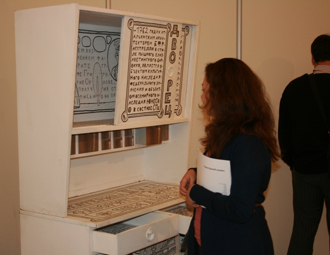 5-7 Владимир Козин, Санкт-Петербург "Ближе к телу", 2009, резина, проволока. 8-10 Валерий Подлясский, Санкт-Петербург "Екатерина II и её фавориты в Зимнем дворце", буфет из проекта "Скелеты в шкафу", 2011. |
