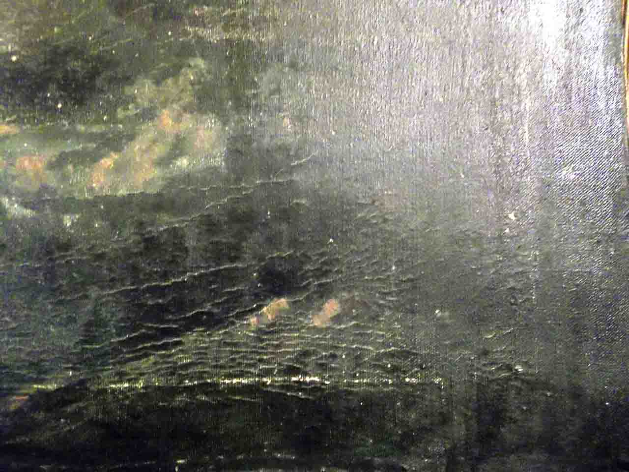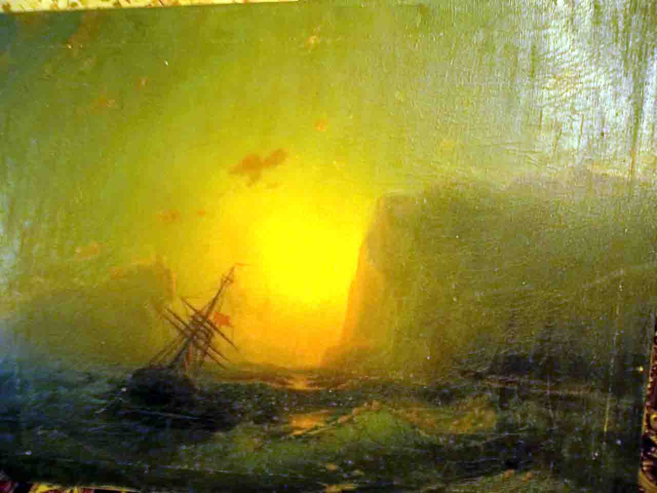Теперь вернемся к представленной Вами работе. Она очень похожа на "Шторм", однако это другая картина. При детальнейшем сравнении полотен, незначительные различия очевидны. Ваша работа - это либо авторское повторение (у Айвазовского были повторы), либо качественная копия с работы "Шторм" с небольшими различиями. Безусловно, есть смысл провести вначале атрибуцию картины. В зависимости от её результата и Ваших планов станет понятно необходима ли реставрация. Удачи Вам. |