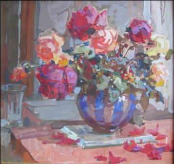 Название: Меркульева М.А.  30.30.б.гуашь.    Розы.1960г..jpg