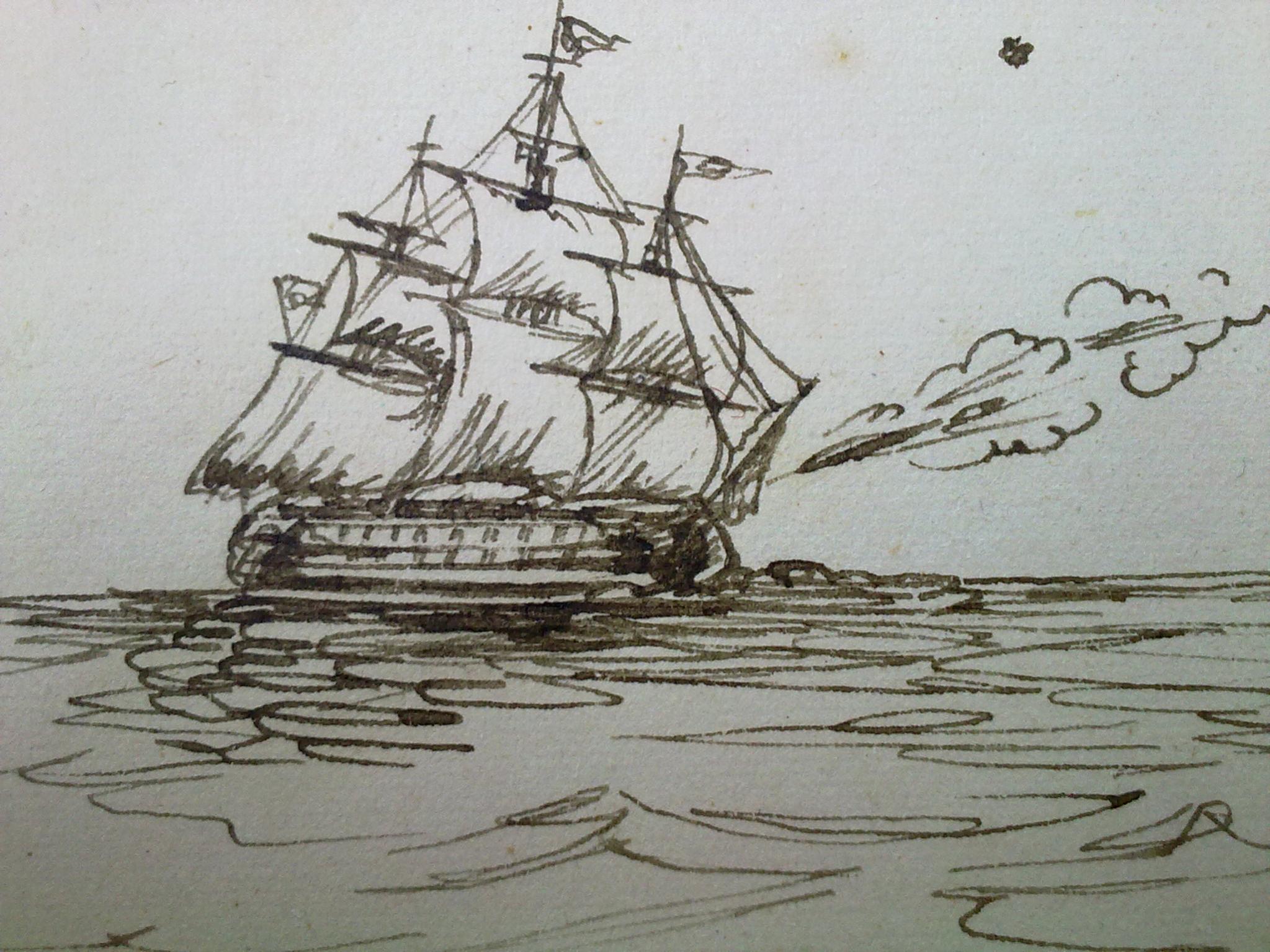 К сожалению, только сегодня увидел Ваш вопрос. Могу с уверенностью сказать, что это Айвазовский. По технике, насколько можно судить по фото, это скорее всего - тушь, перо. В пользу Айвазовского говорят следующие аргументы: так же, как у Айвазовкого (см. образцы) легким штрихом написаны волны, которые даже по форме повторяют волны из других рисунков мастера; сравните парусник из Вашего рисунка с парусниками в предсталенных образцах, они совершенно идентичны; фигурки людей написаны своеобразно - без отрыва пера от бумаги, именно так их изображал Иван Константинович, и так они нарисованы в Вашем случае; почерк в правой нижней части рисунка, бесспорно почерк Айвазовского; чаще всего в графических работах мастер делал надпись на самом рисунке, уточняющую изображенное действие или его место (в данном случае - залп); не вызывает сомнения и автограф Айвазовского (см. автограф в образцах).