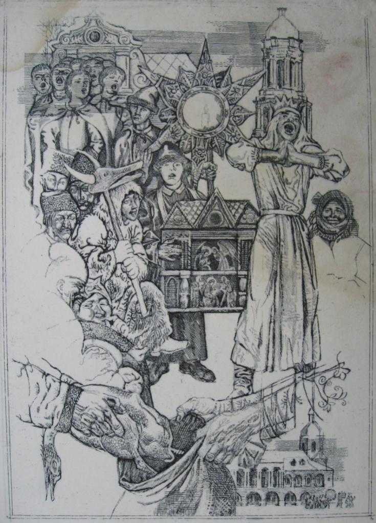 Иллюстрации к сказкам. Линогравюра, акварель 40х30 см. |