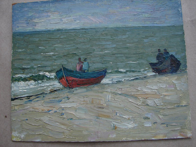 The signature on the back. Details in PM. Yakov Romas Dorofeevich (1902, near Grodno - 1969, Astrakhan). The adopted son of a revolutionary Inessa Armand. He studied in Moscow, in practical Prechistensky Institute (1922 - 1924) at the NP Krymov in VKhUTEMAS /VHUTEINe (1924-1930) at KN Istomin, SV Gerasimov, PP Konchalovsky. In 1924 - 1937 he worked as a theater artist, designed the celebrations in Moscow. Later he worked primarily as a landscape painter, specializing in river and sea views. By processing station "Krasnoselskaya" Moscow metro. The main artist-Union Agricultural Exhibition (1950-1954). Exhibitions since 1933. He taught at the Art School of 1905 (1932-1936), in MChTI them. Surikov (1948 - 1950). Stalin Prize (1948). Member of the Academy of Arts. Solo exhibition took place in Moscow (1945, 1952, 1961, 1962, 1967), Leningrad (1962), and other cities. Paintings Romas JD kept in the Tretyakov Gallery, the State Russian Museum, the Dresden Art Gallery, Astrakhan picture gallery named BM Kustodiev, in many regional museums in Russia. 1. - Oil on cardboard, 17h23, on the beach in Palanga, 1964 2. oil on cardboard, 18h22, Palanga, 1964 |