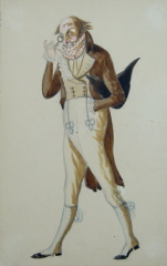Most of the works done in mixed media (gouache akv. tsv.karandashi ...) on cardboard, at least on paper. Oscar P. Mariks very rarely depart from the "theater" in his work, and therefore retained very little of his paintings, most of which are now in museums in the city of Minsk. But the work presented here suggests that each sketch is completely independent, holistic work of art. There are paintings Mariksa late period of his creativity, but, in my opinion, the artistic quality of these works rather dubious. 1. Two costumes. "Robbers"; 1955-60g., 33 * 23 (Price: $ 700) 2. Set design. "Don Quixote", 1950, 35 * 27 (Price: 2500 $) 3. Chapel, 1910 (?), 25 * 30 (Price: $ 700) 4. Set design. Simonov "Someone Else's Shadow", 1950, 26 * 39 (2500) 5. Design sketch, 1950, 30 * 21 (1200) 6. Sketch kostsyuma, 1943, 33 * 22 (1500) 7. Sketch kostsyuma, 1950, 28 * 17 (400) 8. Design sketch, 1950, 27 * 17 (800) 9. Design sketch, 1950, 42 * 30 (5000) |