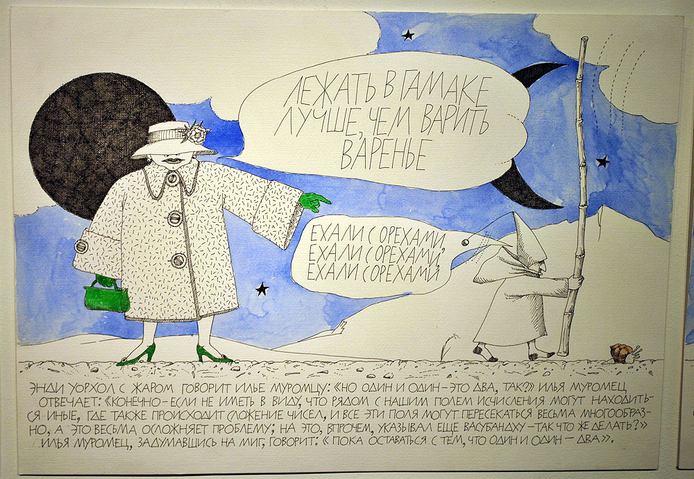 И тем не менее… Зачем стоит идти в ГСЦИ? 1. Посмотреть микроэкспозицию работ Никиты Алексеева (особенно пиджак хорош). 2. Полюбоваться шикарным грачом Полисского. 3. Полистать с любовью сделанный каталог выставки Бориса Турецкого (музей art4.ru) и каталог «Русского бедного». Сегодня Гельман написал, что Кабаков заявил самоотвод по своей номинации. Многие вздохнули с облегчением, а то уж голову сломали, как уважить мэтра и не расстроить остальных достойных. |