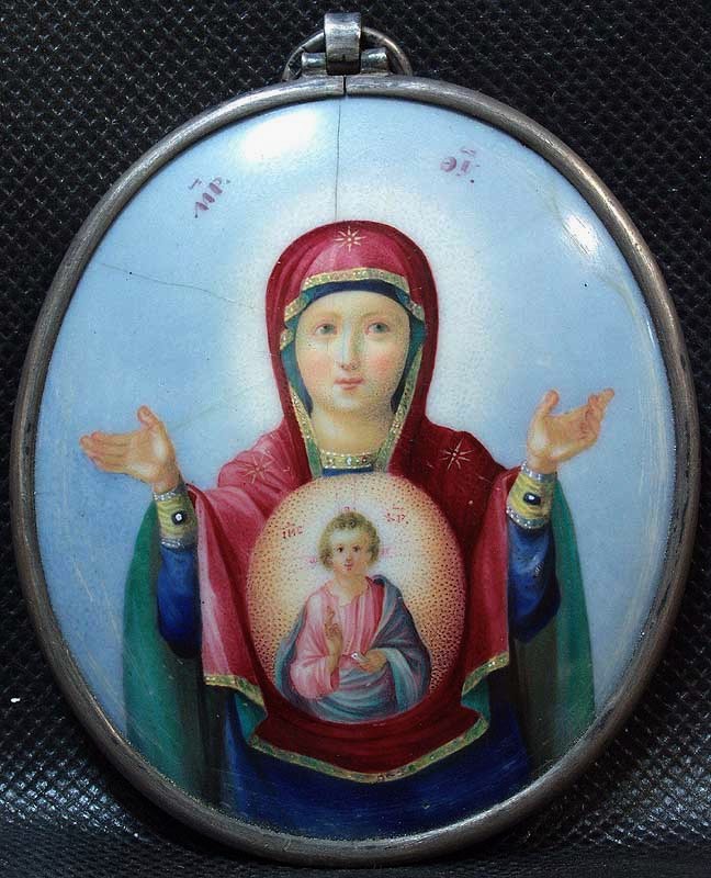 Unfortunately, it is not possible to lay out photos. (because of its lack at the moment) as soon as you have to put up. In general she top gladenkaya such as if something is filled, one person said it was "icing. Icon itself has a concave shape, and the bottom metal (possibly silver in color like on him, only darkened), it is no salary, no nothing, just a metal on it as it poured an image of three saints. More simply can not describe, that is to. I saw her just a moment. (it happened) a huge help, please ...