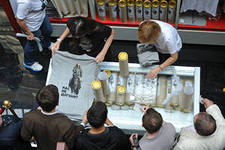 Этому есть другое определение - постановочный фоторепортаж. Но здесь и этого нет - организаторы этого шоу не смогли организовать даже массовку человек в сто, так, нащелкали прилавок с майками и написали, что был небывалый ажиотаж. А то! Сейчас по телевизору передали, что россияне вообще живут в самой лучшей стране в мире.