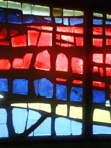 Сдаётся мне, что это эффект фотографического изыска, а объект - всё-таки плоский витраж. |