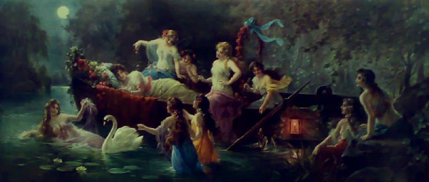 In this spirit, and rugs brought from the girls dressed like this, they lead dances, etc. Something like the emerging mass entertainment, then, preparation for kitsch ... Then, and these cards have to do. The scene depicts the likely bathing Venus. Maybe dorisovannaya The Draw printing in small quantities. Lithograph this would still not bad. Lithography - a printing from stone, first to paint it (then it should be a small size). Some collect such things.