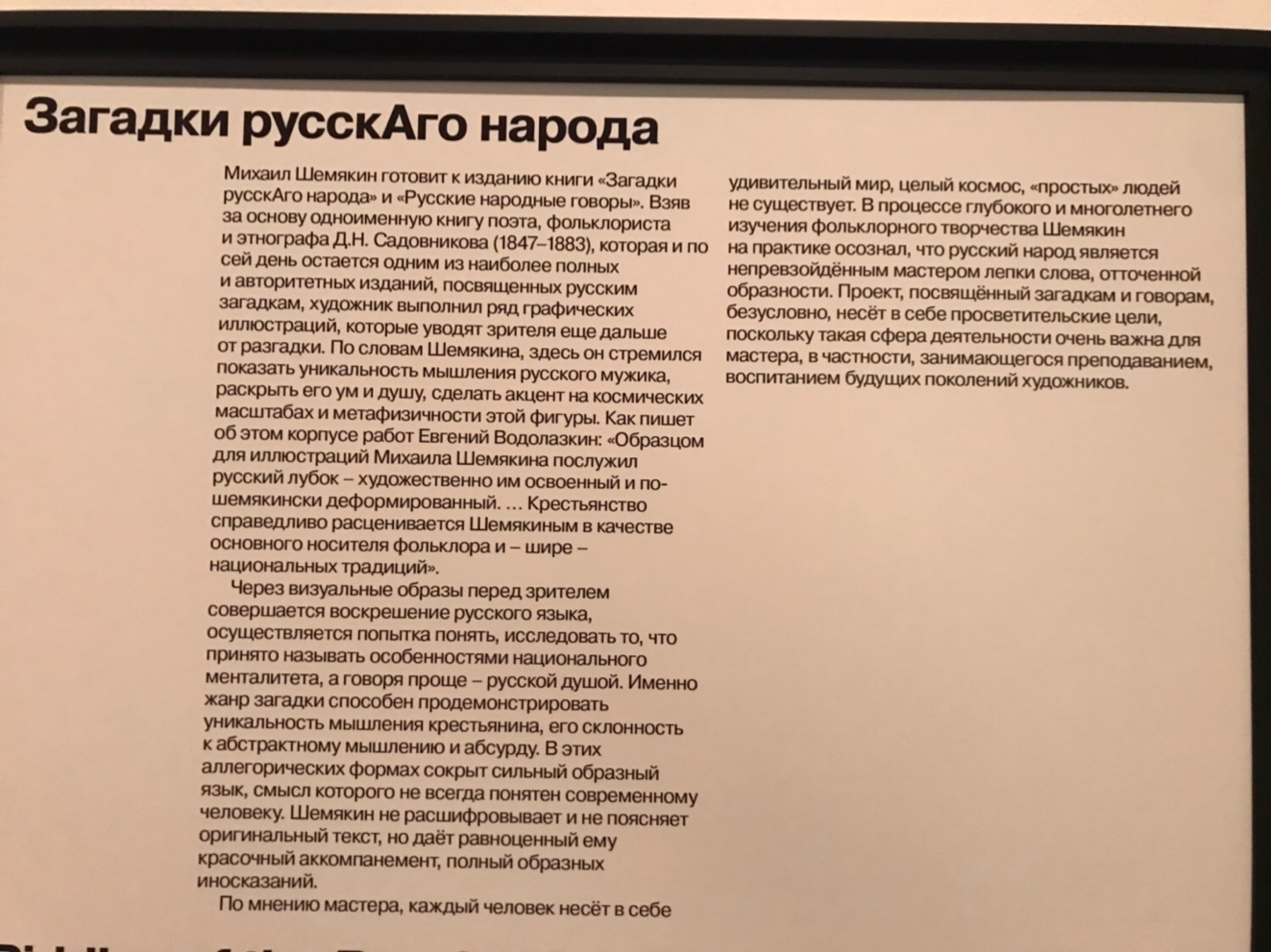 В Московском музее современного искусства в здании на Гоголевском бульваре до 27 января проходит выставка работ Михаила Шемякина «Метафизическая мастерская».