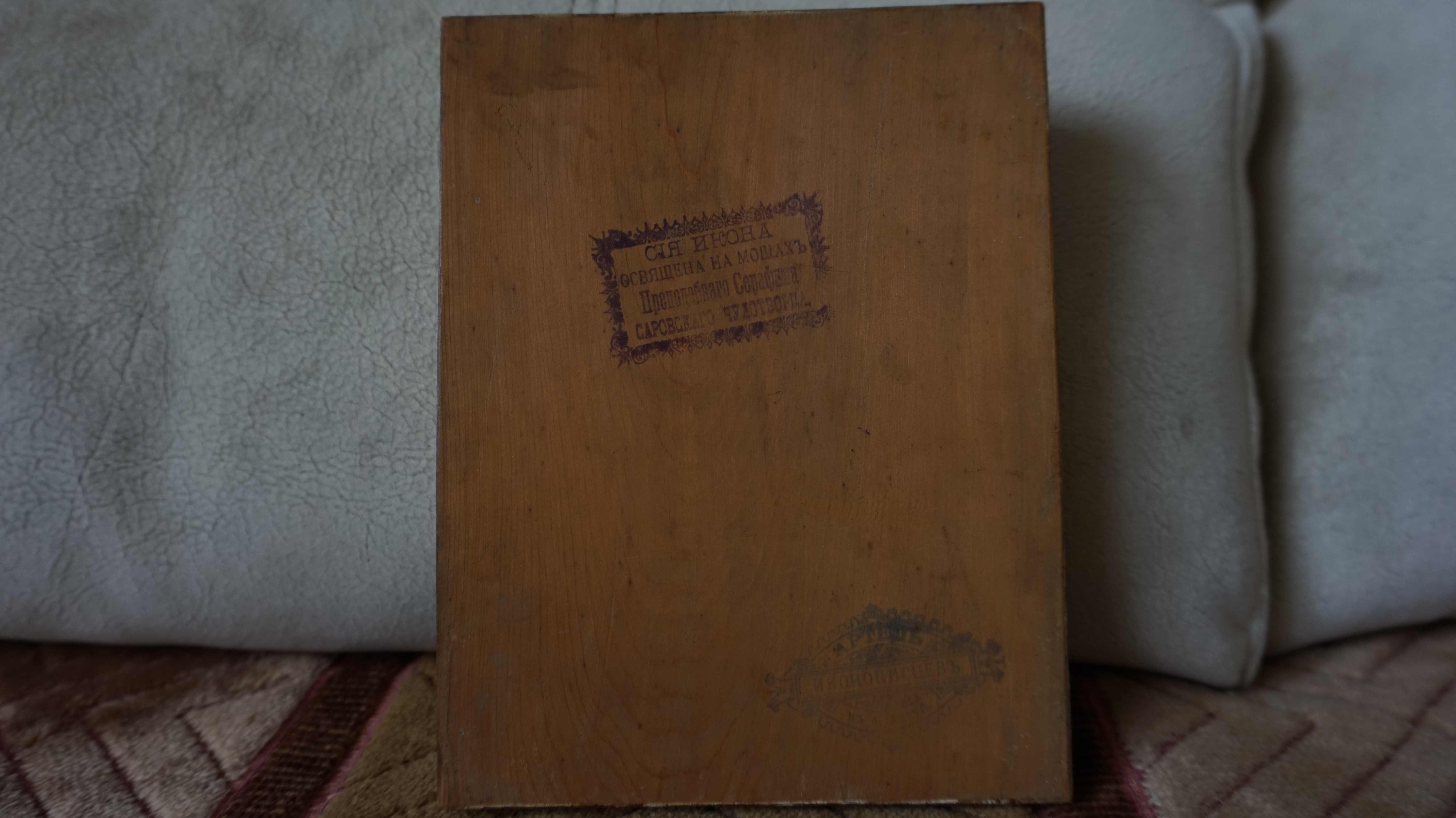Икона Преподобный Серафим Саровский , с печатями , 14*18 см. на золоте , в киоте . .