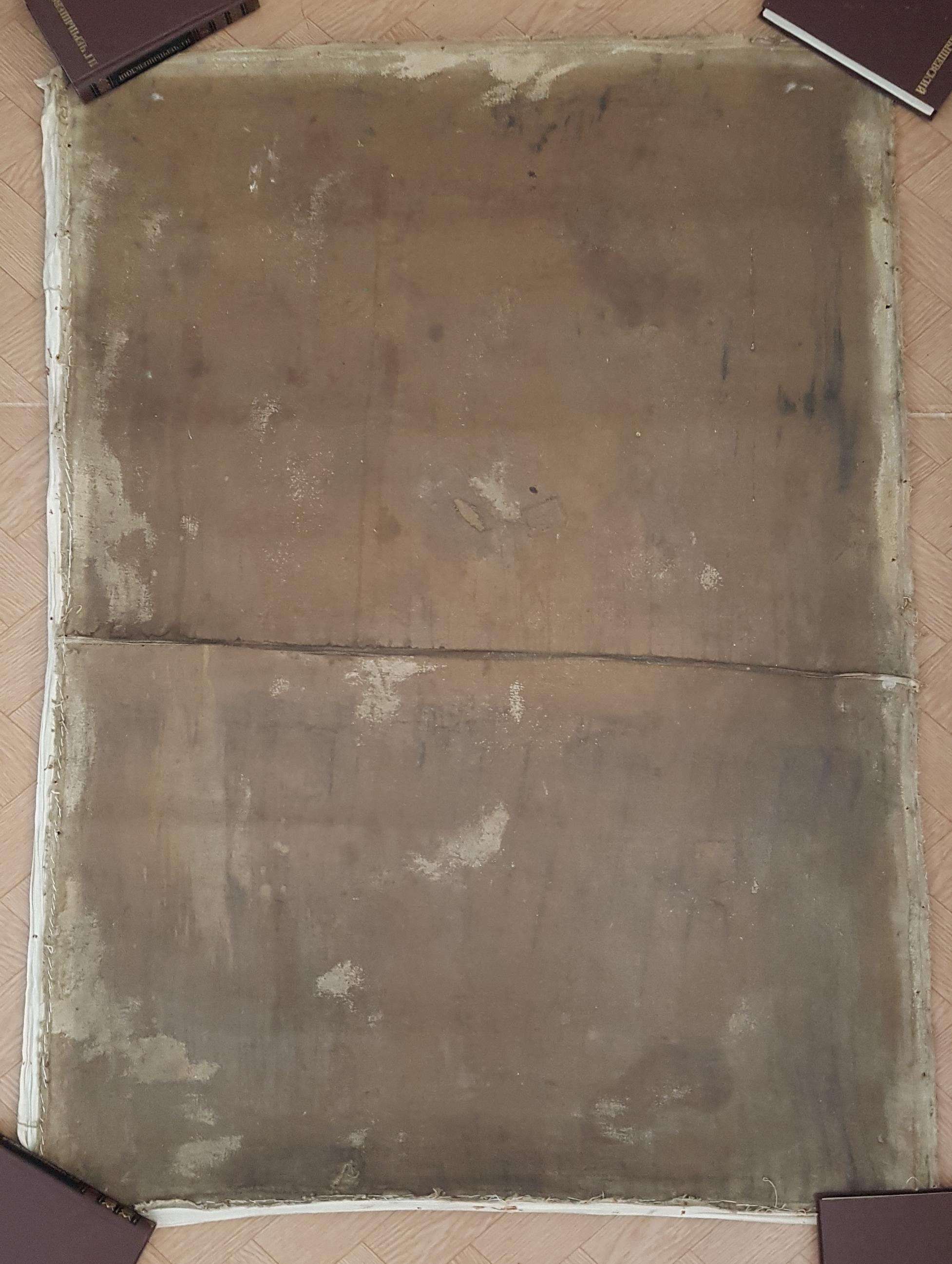 и примерную стоимость размер холста прим. 116*82 см холст ранее был обрезан потом видимо наращивали мне досталась уже свёрнутой в рулон |