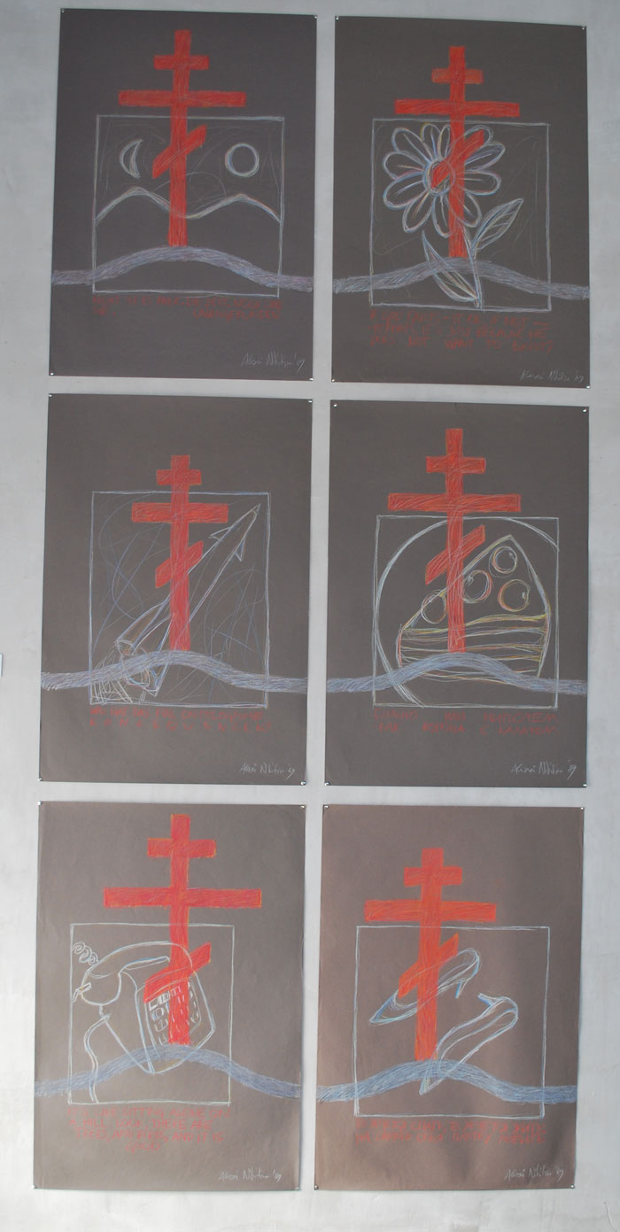 В арт-резиденции Сергея Гридчина (село Дмитровское Красногорского района) завершается большая выставка Никиты Алексеева «Бумажные часовни». Алексеев – семидесятник, одна из ключевых фигур в московском концептуализме. Технически бумажные часовни – это подчиненные определенной концепции независимые графические серии. Каждая снабжена внушительным текстом-рашифровкой, упрощающая погружение в смыслы для зрителей и новых владельцев.