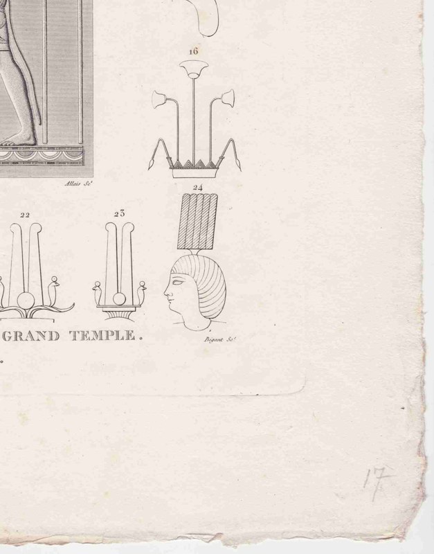 Engraving on copper. The sheet 71,5 h54, 5cm, the board 61h44sm In good condition. Clone publisher Relief stamping (blindstamp) in the upper right corner. List of the section of the monumental edition of "Description of Egypt," documentary research "scientists" who accompanied the ambitious expedition of Napoleon Bonaparte in Egypt (1798-1801). Authors engraving Allais and Bigant. Full name, translated into English reads: "Description of Egypt, or the collection of observations and studies done in Egypt during the expedition of the French army." European demand for information about Egypt and its glorious monuments led to the publication of two editions of this work, with prints of one plate of the press; this sheet from the second edition. Paris. Panckoucke. Ca 1820. Your opinion? How much can this cost engraving?: Shy: |