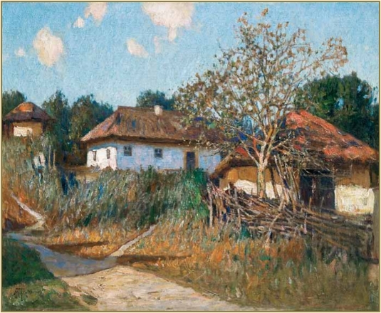 "... Tkachenko participated in several world's fairs. At the Paris World Exhibition of 1900, for example, he was awarded a second medal, at the International Exhibition of 1905 in Liege - Great Gold Medal. At the Paris Salon in 1907 he was awarded Honorary reviews" . In 1911-1912. for the painting "In the Ukraine" and "Type in the province of Poltava" Tkachenko received at the Salon of the second and third gold medal. During the resurgence of nationalism in France (after the defeat in the Franco-Prussian War), it was a rare case. And a few years before zhudozhnik was also awarded at the same Salon, Great Gold Medal, which gave him the right to exhibit his works without a jury ... Great success was his personal exhibition in Paris in 1909. It exhibited 62 paintings and dozens of sketches, written in Kharkiv, Poltava, Lubny, Opishne etc. " That is, and work on the Four Corners (By the way, the book 63, the name of "Indian Summer") and those presented above and there is a subject for which Tkachenko received the medal. The artist clearly missed their homes and carried it in his heart through all creation. " |