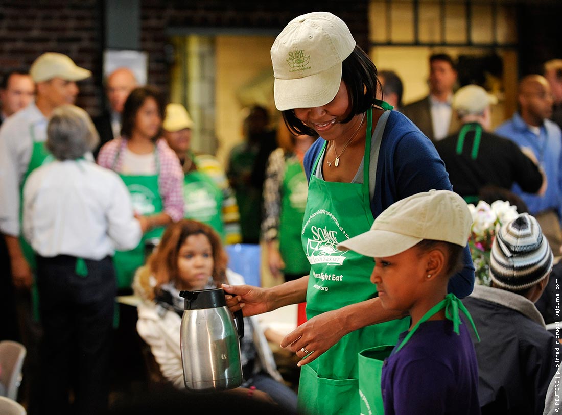 That's why the family's first black U.S. president Barack Obama n en banc (Michelle and daughters including) yesterday took part in organizing a charity dinner for the homeless residents of Washington to honor the national holiday - Martin Luther King Day. Lunch was held in the dining room for the homeless and needy, by the organization SOME (So Others Might Eat): http://www.some.org |
