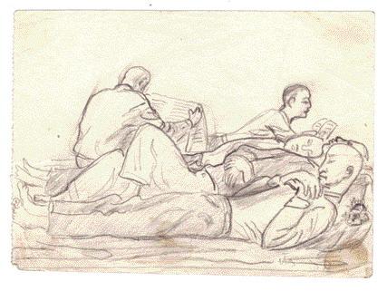 for some time Sooster was perhaps not the most frequent visitors CAFE Text: Lev Smirnov Letter Asarkana on January 24, 1961 The letter contains two layers of information. One - is an act which condemned wrote AA.: That the recipient is poorly done with Olya. Another layer - is vaguely show through conflict relations with Olya most AA, to which the (conflict) the recipient has nothing to do. On the decoding of this content is great reason is mentioned in a letter to Olga. LS sent by mail AA S. Maugham novel "The Moon and a penny, just reissued (then at the periphery of" intellectual "book was easier to buy than in Moscow). In response, he received the envelope with the text of AA and drawings. Drawings - it is not Sooster, it Vadik imitates Sooster. ________ Actually, on this collectively, the Parisian artist (in the then Moscow's view, it is 1960-1961) appeared in the "artistic" another artist - Nolev-Sobolev. As already realized a Parisian cafe Rotondo he was carrying a mission art accent. The pronounced disability only decorated his bohemian look, his bones have always stood in a conspicuous place at the table, he always sat right at the entrance, in a corner near a large window-display - the main attractions of coffee, looked grim, mastitis, grandly peremptory. It looked like (but only superficially), the main character in the play Saroyan's "Time of Our Lives, who is also disabled and also constantly sitting in a cafe and the directs the surrounding bustle of waiting in the wings (the play had just been translated and beztirazhnoe edition of the All-Russia Theatrical Society hodilo in a cafe on the hands). He is constantly flipping through some funky foreign publications, smoking sign then "Camel" and generally all carefully Hemingway was also evident.
