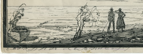 На третьем рисунке изображён "Курзал", Сестрорецкий Курорт. Здание было разрушено бомбёжкой во время Великой Отечественной Войны. Оба рисунка уникальны с исторической точки зрения. |