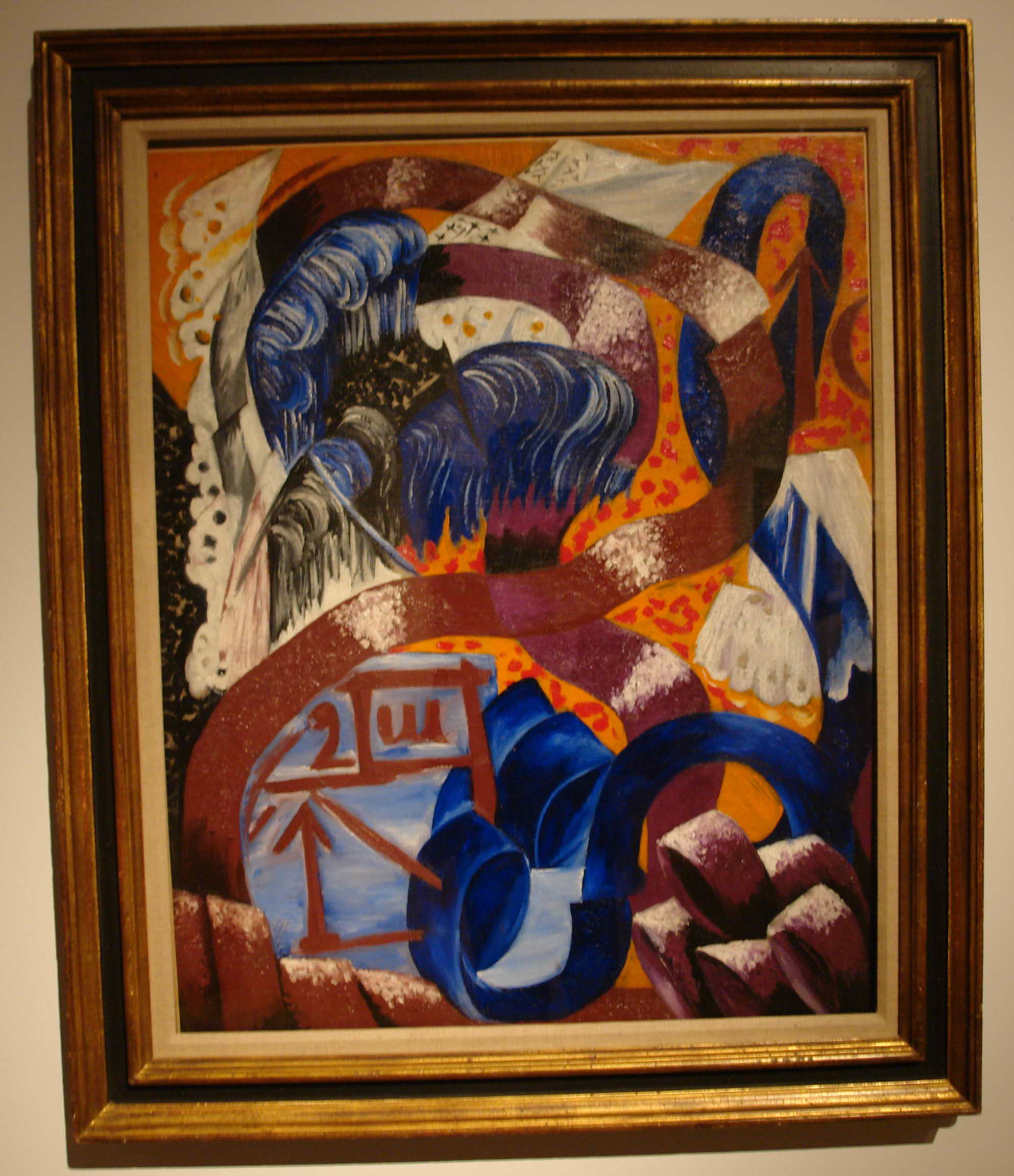 После религиозной темы душа потребовала кубизма и я поперёк всех циклов ломанулся в том направлении. По дороге размахивая фотоаппаратом направо и налево снимал всё подряд, на что глаз упадёт. Вдруг кто-то поймал за рукав и стал приглашать на какой-то круглый стол. Боже, подумал я, о чём они говорят... напротив как раз попалась картина с лучизмом, я ловко вывернулся сфотографировал её и продолжил движение...