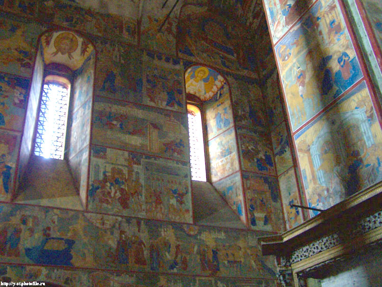 Грандиозная работа по росписи интерьеров храма была осуществлена в 1695-96 годах артелью Федора Игнатьева и Дмитрия Плеханова. |