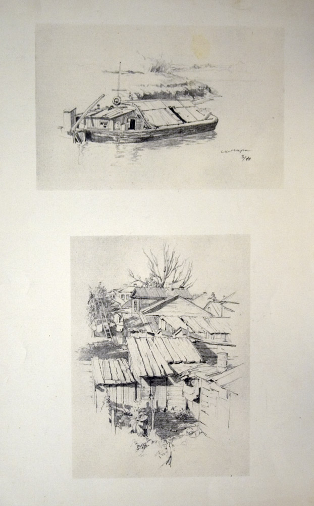 Литография 27х39.5 см. Офорт "?Гаврош?" 10х13 см. Две Литографии Размер листа: 28х39 см. 1956 г.