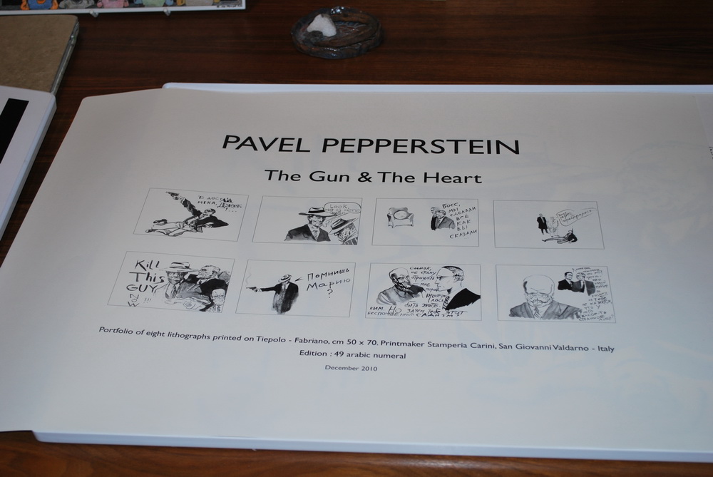 Ходил на днях смотреть обновки коллекционера Александра Кроника. Оформленных под музейное стекло двух Яковлевых – сотбисовский «Портрет ветра» и абстрактное масло на бумаге. Вещи из собрания Костаки. Из других интересных новинок – альбом тиражной графики Павла Пепперштейна "Пушка" и сердце" (?) и соковский Ленин-Джакометти.