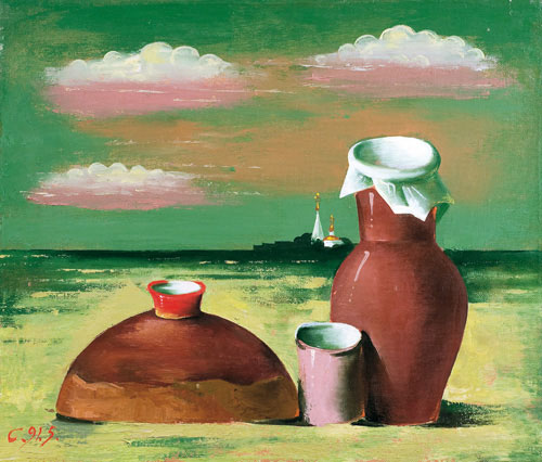 Иван Тарасович Сандырев (1932 - 2002) Творческий и жизненный путь Заслуженного художника России Ивана Тарасовича Сандырева был связан с Загорском - Сергиевым Посадом - городом, который стал его духовной родиной. Творчество этого крупного, неординарного художника было наполнено стремлением к постижению древнерусского и мирового искусства. Иван Сандырев был блестящим мастером композиционных полотен - "композитором" в живописи. Пространство его картин многомерно, реалии в них переводятся в поэтические метафоры, символы. Для этого живописец избрал и соответствующий язык, в структуре которого заложено переосмысление древнерусской живописи, ренессансных и других источников, переплавленных им в собственную стилистику, в присущую только ему манеру письма. Ее отличают спокойный, ясный ритм, выразительный силуэт, плавные контуры, а главное - уравновешенность и выверенность всех элементов. Эти черты присущи произведениям 1970-1990-х годов - зрелого периода творчества мастера. В более ранние годы он отдал дань "суровому стилю". Поиски идеального Образа и попытки его воплощения - вот путь, по которому Иван Сандырев шел всю свою творческую жизнь: писал "идеальные зеленые натюрморты", русских мадонн, постоянно "перечитывал" библейские сюжеты. Он создавал на холсте гармоничный мир, вобравший в себя преходящее и вечное, неизменно сохраняя высокий строй образов и совершенство живописного языка. Иван Тарасович Сандырев профессиональное образование получил в МГХИ им. Сурикова (отделение монументальной живописи, мастерская А.А.Дейнеки). Член Союза художников с 1968 года. Работы живописца находятся в музейных собраниях Брянска, Донецка, Сергиева Посада, Серпухова, Смоленска, а также в многочисленных частных коллекциях Японии, Германии, США, Великобритании, Бельгии, Франции, России и других стран. Яблочки-то какие! Об одной из представленных ниже картин сейчас веду переговоры о покупке.
