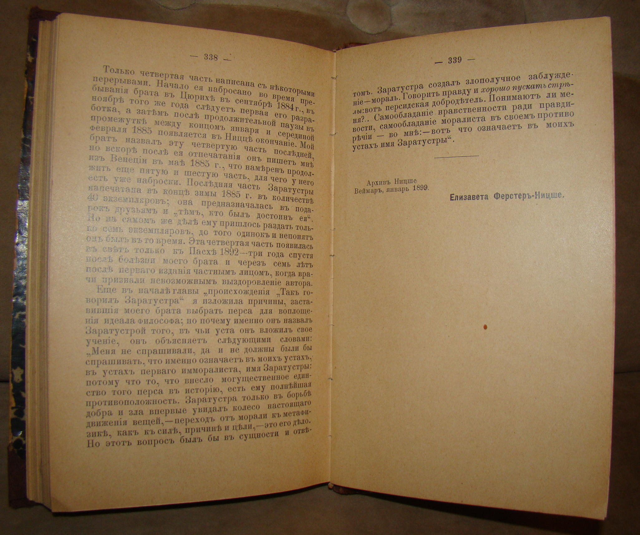 Ф. Ницше "Так говорил Заратустра". Москва 1900 г. Твердый переплет, немного уменьшенный формат. 340 страниц, блок в идеале, немного потерт переплет.