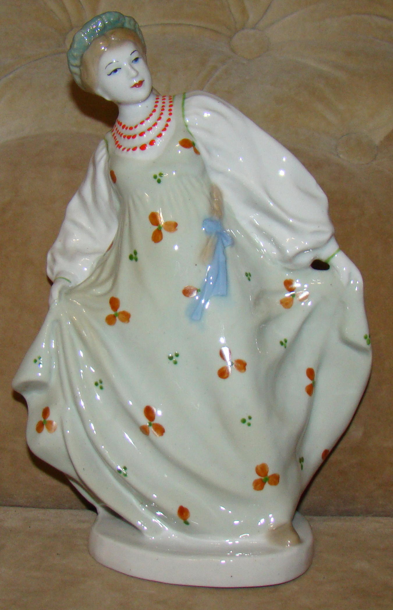 Красивейшая фарфоровая статуэтка "Русский танец", производства Артели "Керамик", автор - И. Коломиец, 1950-е года. В очень редком празднично-нарядном раскрасе, чем выгодно отличается от голубых и белых аналогов. А личико прописано - залюбуешься. Настоящая русская красавица, как из доброй сказки. Высотой порядка 23 см, в идеальном коллекционно-подарочном состоянии. Ценю в 6000 руб. фиксировано, с моей отправкой по РФ. Оплата на карту Сбербанка. Продается также по месту, перед ставкой прошу уточнять наличие.