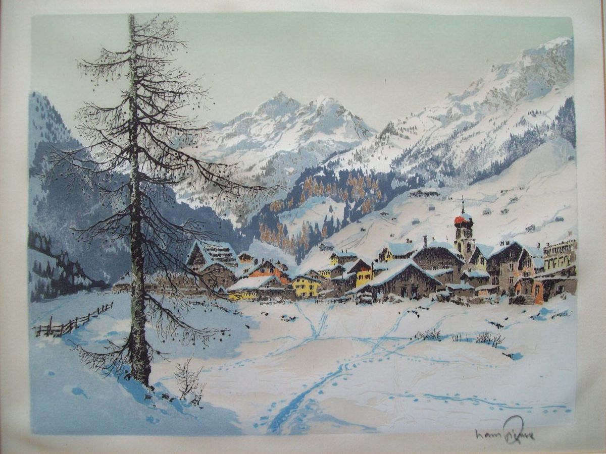 - «Австрийская деревня зимой». Шелкография. 29,5 х 22,5 см (37 х 29,5 см). Подпись автора. 5500 руб.