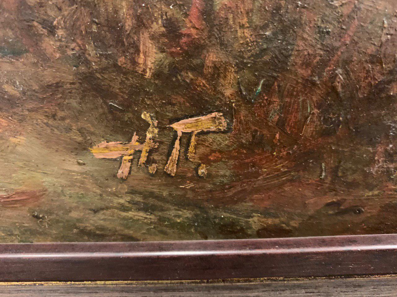 Есть вот такая охотничья собака. Н.х. с монограммой. К сожалению определить авторство так и не удалось, но работа рубежа веков, очень добротная.