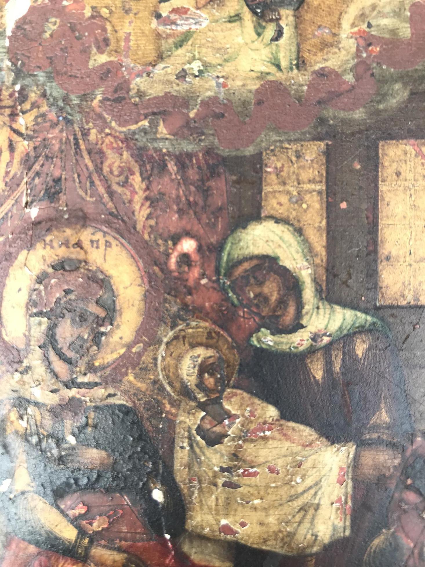 Здравствуйте, посмотрите икону может интересная, под следом краски видны следы металла, предположительно золото.