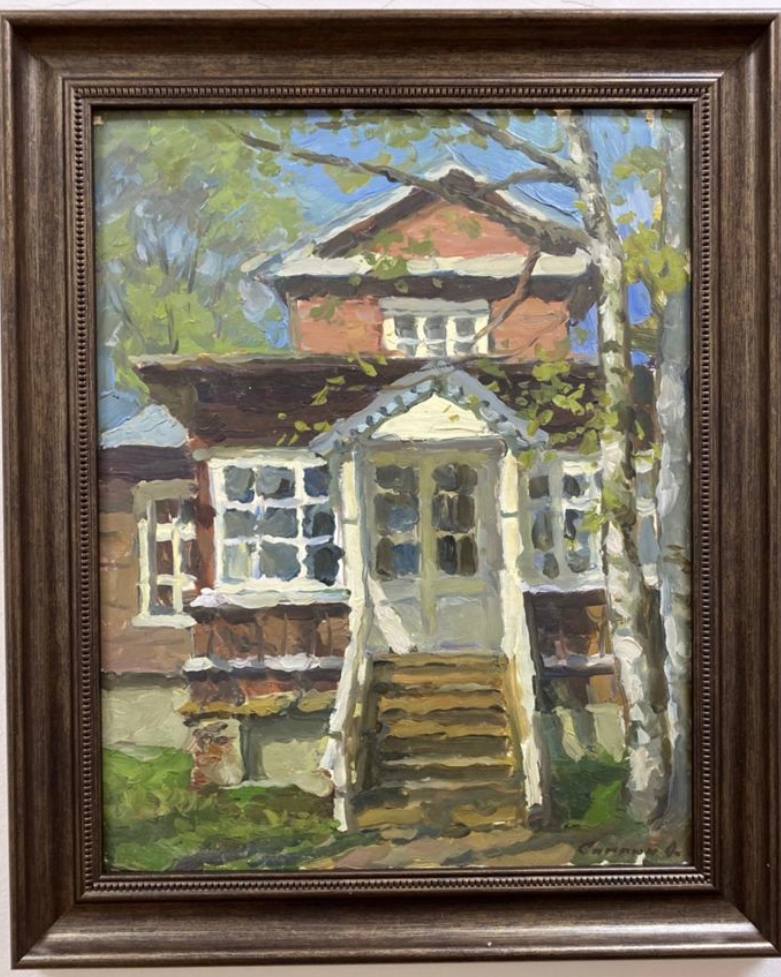 «Крыльцо» 1998 г. Оргалит/масло 35х27 Александр Степанович Саплин родился 27 марта 1953 года в г. Воскресенск, Московская область. В 1983 году закончил Московский государственный художественный институт им. В.И.Сурикова (мастерская профессора В.Г.Цыплакова). Постоянный участник всесоюзных, всероссийских, зональных, областных и московских выставок. Член Союза художников РСФСР (1990). Занимается росписью храмов в глубинке России. Совершает творческие поездки по России и зарубежью. Заслуженный художник Российской Федерации (2004). Его работы находятся в Московской Патриархии и частных коллекциях России и зарубежья. |