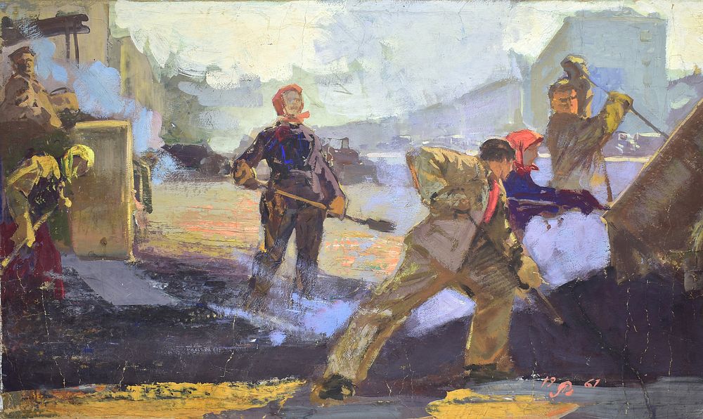 ![]() Размер картины: 62 х 104 см. Картон, масло. 1961 год. |