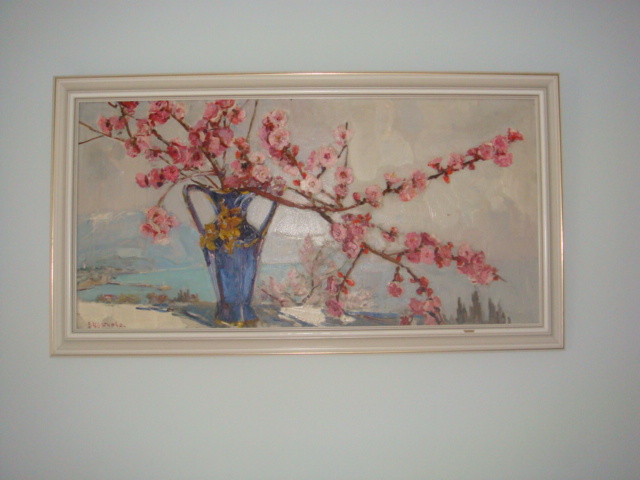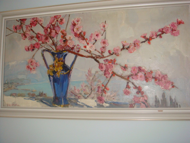 "Ветка цветущего персика" 50\100 х\м 1989г.