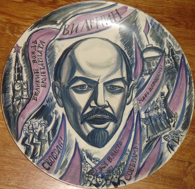 Faience glazed, hand-painted, diameter 35 sm.1969 year
