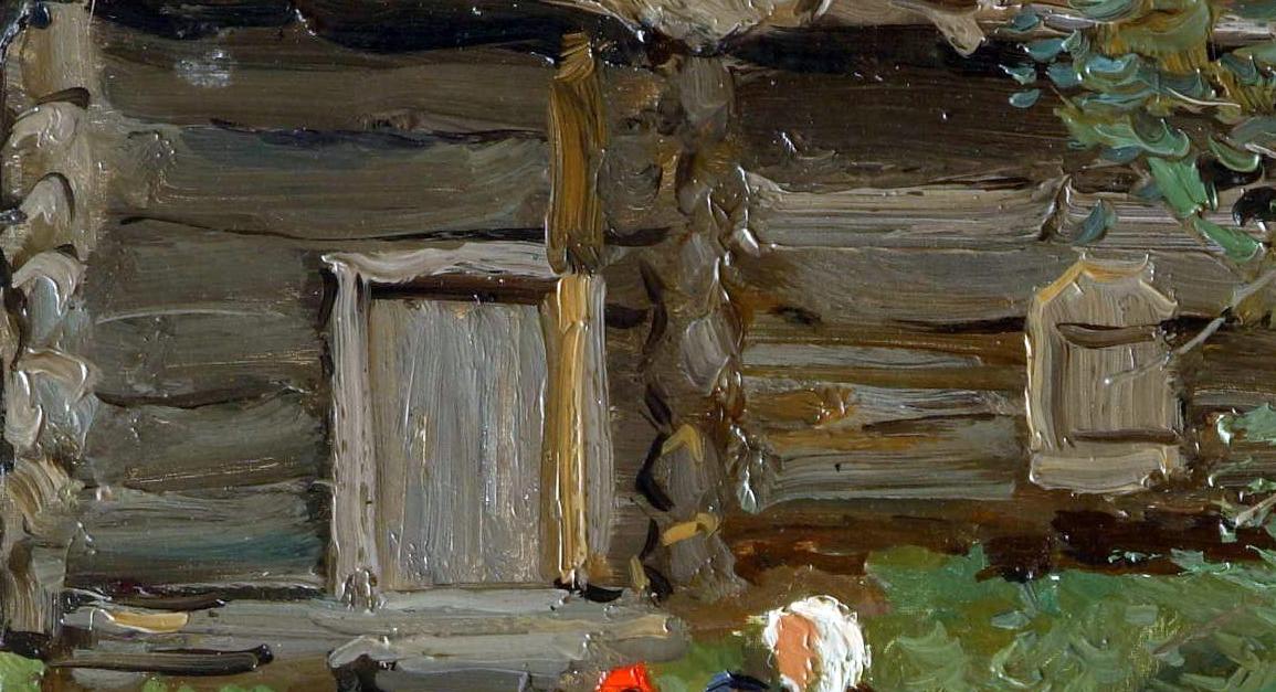 Как это выглядит и как это делается я вызнал, а на сколько это технически сложно воспроизвести... не знаю. Писать маслом многослойно это одно дело, а вот писать одним мазком многоцветно... другое. Выспрашивал у Дедули .... оказывается дело умения и техники. Выкладываю два фрагмента работ, которые в моих глазах и показывают чудо-мазки и чудесные сплавы красок. На первом фрагменте хорошо видна типичная техника прорисовки деревянного сруба. Второй фрагмент, это прорисовка луча света на деревянный пол, в тёмном помещении, где на полу разлита мыльная вода. Посмотрев на этот "кишмиш", заметив при этом, что по цвету, тонам и общему колориту всё в точку, получаешь ответ на вопрос, почему Стожарова подделать практически невозможно. |
