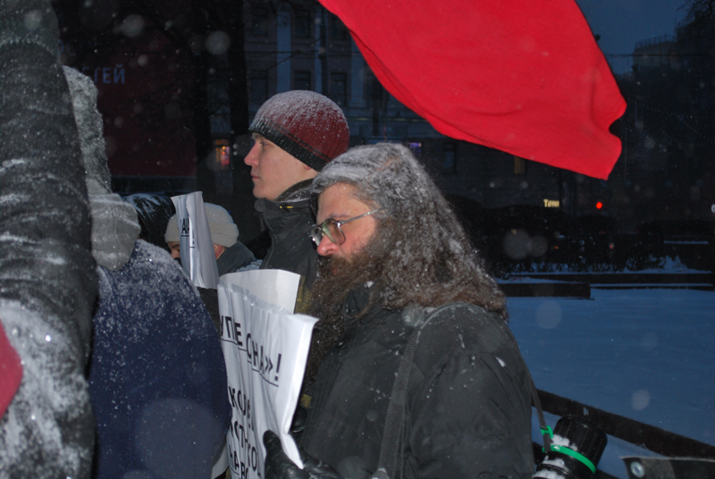 Публикую компактный фоторепортаж с сегодняшнего митинга в поддержку группы «Война» на Пушкинской. С погодой не повезло, сильный ветер на морозе, может поэтому народу было меньше ожиданий. Наверное, человек сто. Сам опоздал на полчаса, так что застал уже суть концовку. Лозунги были, речевки были.