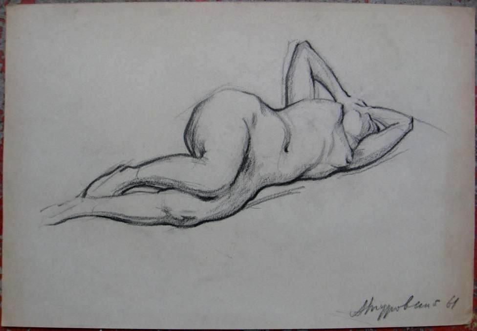 Размер работы 30х42 см., бумага/уголь, 1961 год.