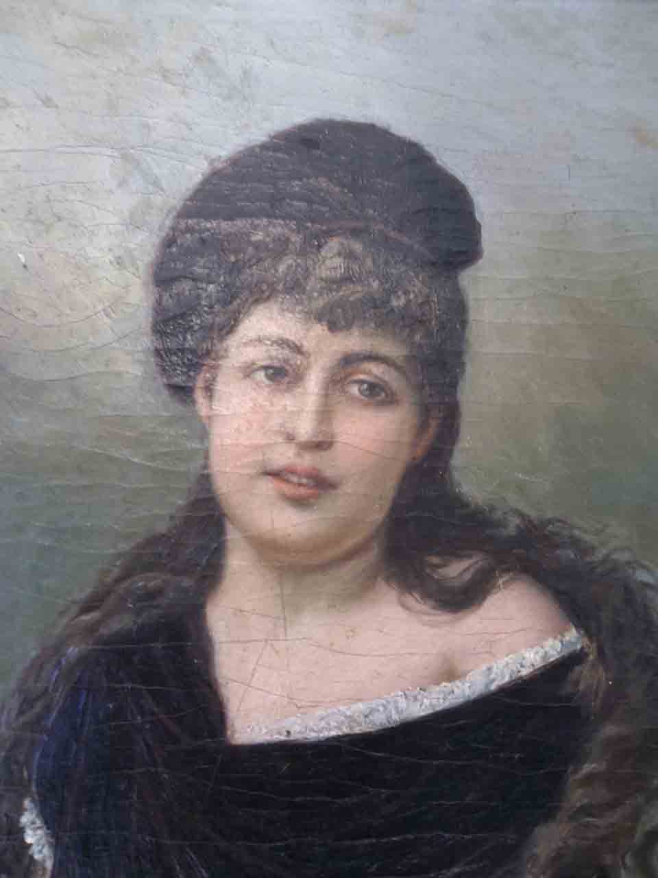 Очень интересный портрет, голова детально выписана. А вот левая рука портит цельный вид то ли не дописал то ли не захотел. Да и подпись странновата, в 19 веке кажется не писали такими крупными буквами. Впечатление то ли студент писал а может и сама художница левша написала себя а подпись более поздняя...