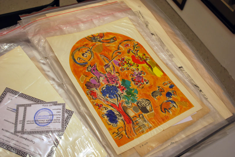 In the gallery , " Antique engravings " - the most sensible stand. Most of the prices written, visitors do not jerk . Limited edition works by Chagall - from 20 to 47 thousand rubles. Sketches of stained glass, which was discussed at the forum - no not offset, lithographic prints from stone. Affordable price is explained by the fact that they released a huge stained-glass synagogue copies, about 5,000 copies. Beautiful work alive .