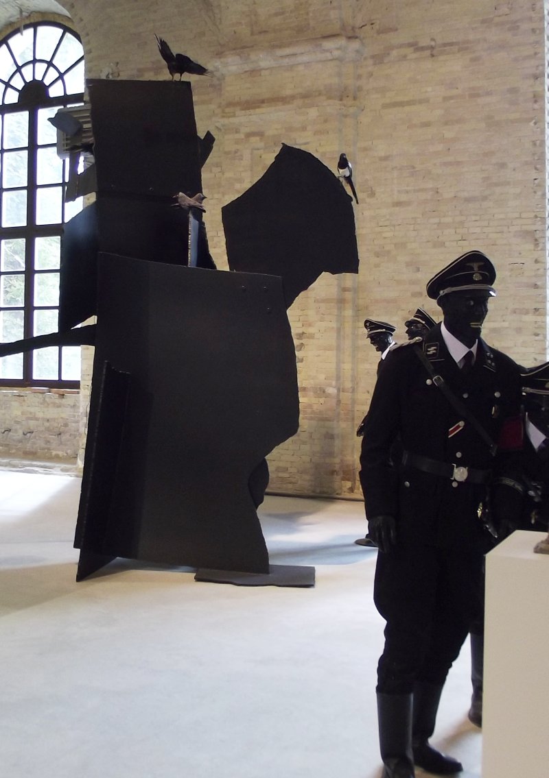 God forgive me, Phyllida Barlow, but out of respect for the valiant fighters against degeneration am submitting correction to the planned route and skip forward a series of works "Degenerate Art" Chapman brothers. Project Chapman ironically simulates a fantastic situation where modernism, presented at the Munich exhibition "degenerate art" (such is the stamp of Nazi propaganda that was used in Nazi Germany for the determination of modern art), would have received the approval of the Nazis. While ekorshirovannye Negro-Nazis dragged from degenerative sculptural objects, the lone dissident dummy (sort of a Ku Klux hippies), sticking to a genuine old painting with a scene of the crucifixion. Here is a picture of objects 4 Chapman (the first - with ofsayta) and consoling maxim photo Sergei Bratkov. Special thanks to an ingenious eksress Tandem-analysis, "small-town business," provernuvshego Biennale in order to cut the dough on tickets. Felt ashamed of the poverty of local shopkeepers, who can not think globally: not smart enough to take with a nose for 800 hryvnia instead of 80! Of being a student and pensioners, it was possible to penetrate into the hot spot at all for 20 USD. - And it is this in a country where they honor the memory of O. Bender ... People must know sorrow businessmen and their accomplices. Organizers: Ministry of Culture of Ukraine, Kiev city administration, Art Arsenal and the eponymous charitable foundation. Under the auspices of President of Ukraine. With the support of funds Voronov and Poroshenko. And many other companies and private owners. In the Cabinet took part, headed by the Prime Minister: Azarov ordered to attend the event, I suppose, to create advertising. And the whole company is not even collected Megabucks - is not a complete failure ... And if you take into account the overhead ...... ))) |