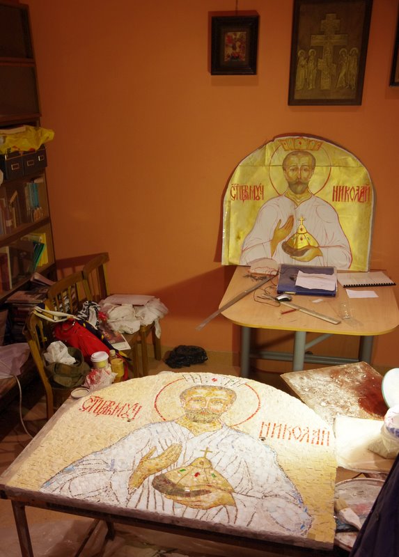 Open the page Kamyshovaya Alexandra ( 05/04/61 ) muralist in communicating just Sasha Kamyshovaya about this talented, childishly pure and sincere man, with work done in a mosaic for the church " Saintly King - Martyr Nicholas II and all the New Martyrs and Confessors Russian " located on the Golovinsky cemetery. From the story of Sasha's " Father - Temple coach Michael Ardov was an icon, a sketch , we have a board called a mosaic , and enter into the architecture of the building was my job , work hard and had their little secrets in execution, in the material, and the day finished, the granddaughter was born .... "