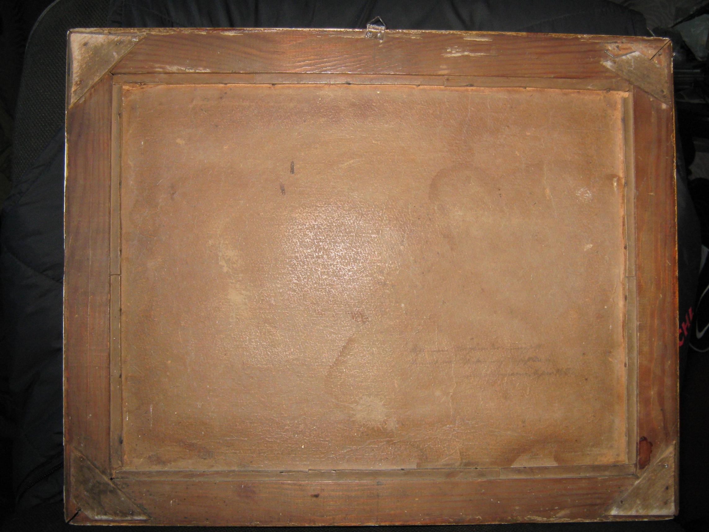 Здравствуйте. Кто может подсказать авторство картины и стоимость. Картина была привезена во время войны дедушкой из германии, как он рассказывал из очень богатого дома. Я не знаток но картина мне нравится.) На обратной стороне надпись трудно читается.