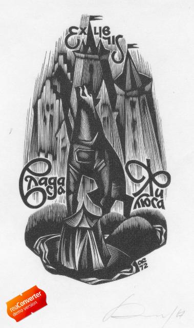 У моего друга есть много экслибрисов Анатолия Ивановича Калашникова (1930-2007). Несколько сканов сделал и размещаю на форуме. Экслибрисы находится в Варшаве. Он хочет продать все (всего 38 экслибрисов Калашникова). Нужна оценка. Также подскажите, где лучше продать. Спасибо! |