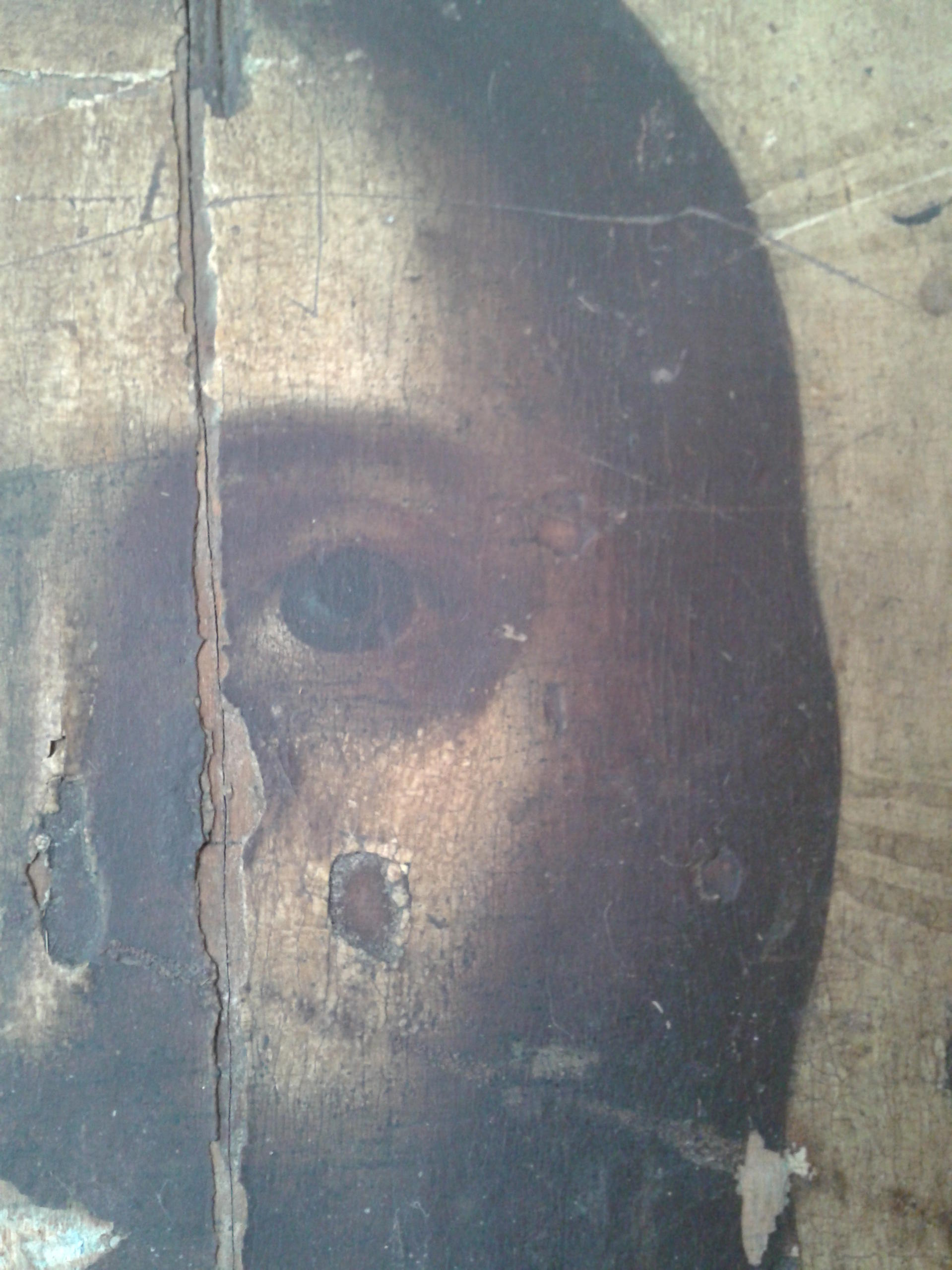Добрый день! Знакомые моего дедушки попросили его вывезти мусор со старого дома,в мешках с мусором была старая икона, которую он забрал и по мере возможности отчистил.Помогите опредилить что за икона,её возраст? С ув.