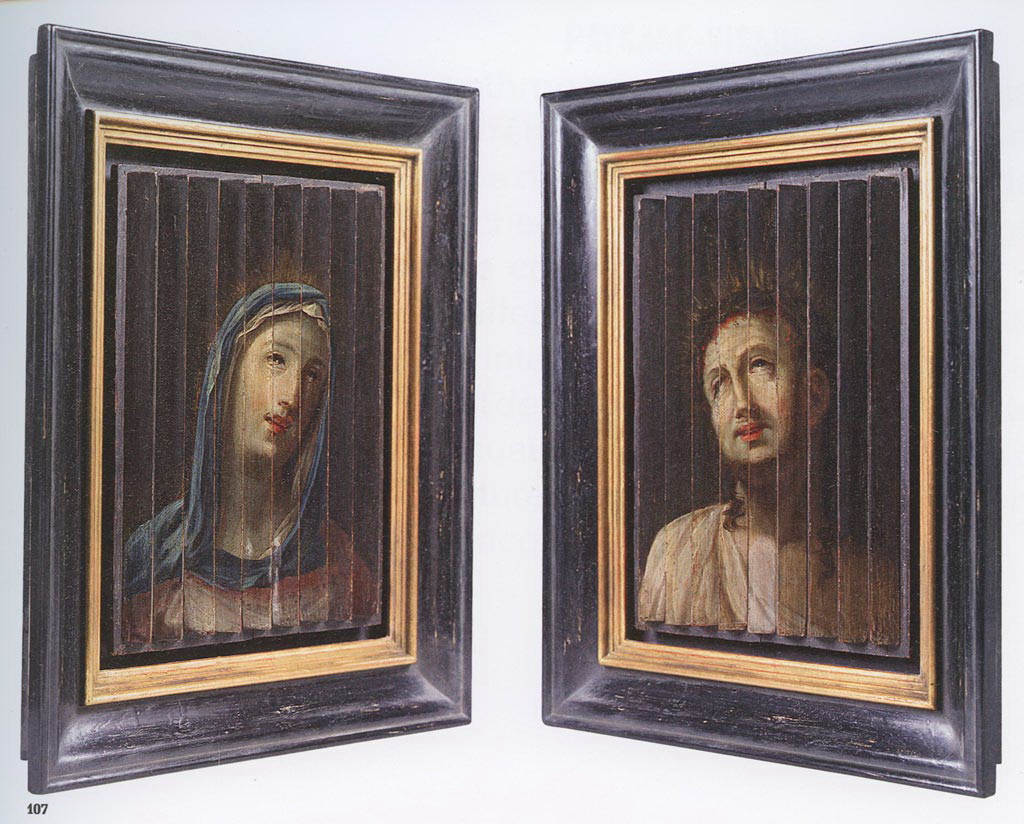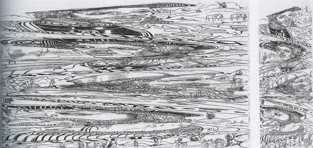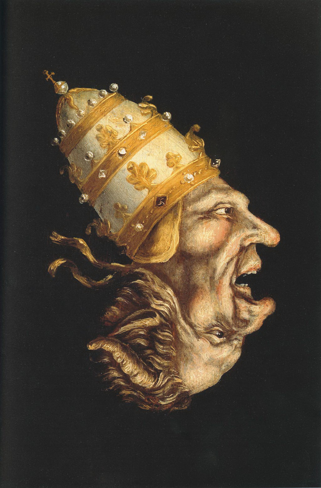 9 - Anonymous Four portraits, here depicted Charles V, Ferdinand I, Pope Paul III and Francois I, but they are visible only when looking for work from the end at an angle of 15 degrees. 10 - the same trick, only vzgyade left and right we see two different images. |
