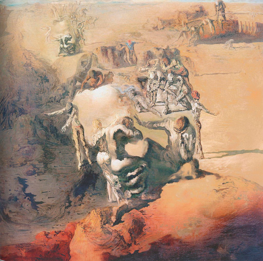 Continuing. 1 - "Steep Bank" by Degas, but it can be found lying naked on a built-in. 2 - "Shell" Enzora. Try the far left you can see the portrait shells bearded man in a hat, and below and to the right - another monster. 3 - Anonymous "A cat-frog. 4 - "The Red Model" Magritte. 5 - "Waterfall" Escher. 6 - "Big paranoid" Dali, in the heart of the work you can find compiled from parts of the landscape and figures in a portrait, apparently, this very paranoid. 7 - Another masterpiece of Dali's "woman's head in a battle" - the essence of the name. 8 - "Rape \ Breach (laws of reality) Magritte. 9 - this picture (can not remember the author, the directory is not at hand) is called the" Pleasure Death, "in addition to a portrait of Dali impression of the skull, made up of female figures (a gift from Vladimir!). 10 - again I do not remember the author (if someone wants to learn a name, ask a question, my answer) is called the "Wildlife of Britain." This thing is made of real stuffed little animals, it is hefty - as a man, gives a shadow in the form of two human profiles.