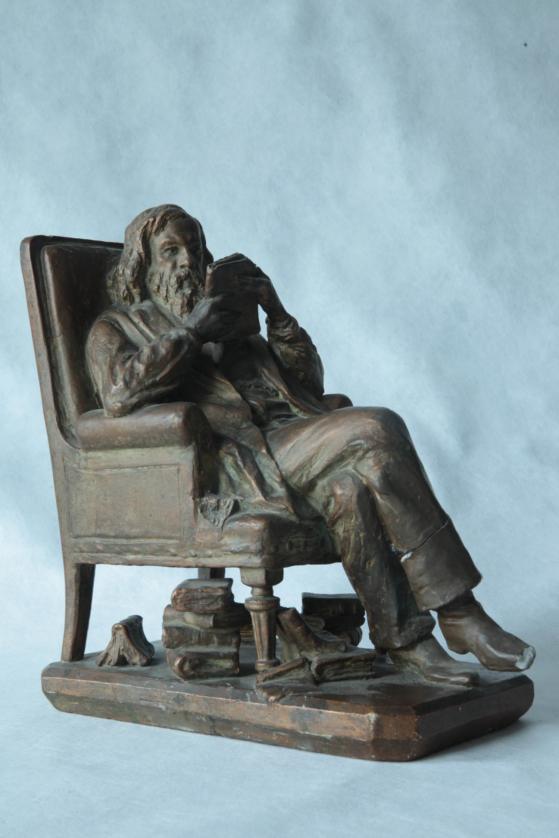 1. Мрамор, 19 век, Библейский сюжет «Ребекка у колодца». (Как мы понимаем, колодец с водой символизирует источник жизни. Служение, которое выполняет девушка - несет эту воду людям - должно вдохновлять на служение обществу. Скорее всего данное произведение искусства предназначалось для значительных общественных деятелей.) Дворцовый предмет. Высота 125 см, постамент 100 см. В местах подписи – сколы и врезки (подпись утрачена предположительно при перемещениях в революционные или военные времена). Имеются данные о наличии в прошлом подписи, схожей с фамилией Забелло. По свидетельствам специалистов исполнение скульптуры имеет значительное сходство с работами известного русского скульптора Пармена Петровича Забелло (скульптуры которого имеются в Русском Музее Спб и других известных музеях страны). 2. Бюст Л. Н. Толстого. Абсолютно уникальная работа академика Ильи Гинцбурга. По воспоминаниям автора работа делалась с натуры в Ясной Поляне (это единственная из трех авторских скульптур Толстого, сделанная Гинцбургом с натуры, остальные две делались им по фотографиям и эскизам), при этом Лев Николаевич позировал одновременно Гинцбургу и Репину (что подтверждается прилагаемыми к данной работе воспоминаниями автора). Первый слепок, гипс, подпись латиницей «Elya Ginzbourg», «Tolstoi», кириллицей «Ясная Поляна», «1891». Высота 75 см, 1891 год. 3. Д. И. Менделеев, гипс, высота 32см. Подпись "Худож отлив Д.М. Бройдо, СПБ". Точно такая же (таких же размеров и тоже в гипсе) найдена в каталоге Русского Музея в СПБ работы Гинцбурга. 4. Максим Горький, гипс, высота 65 см. Подписи нет. По пластике имеется сходство с работами И. Гинцбурга. 5. Кузнец, шпиатр, высота 58 см. Подпись латиницей "FORGERON". Западная Европа, 19 век, предположительно Франция. |