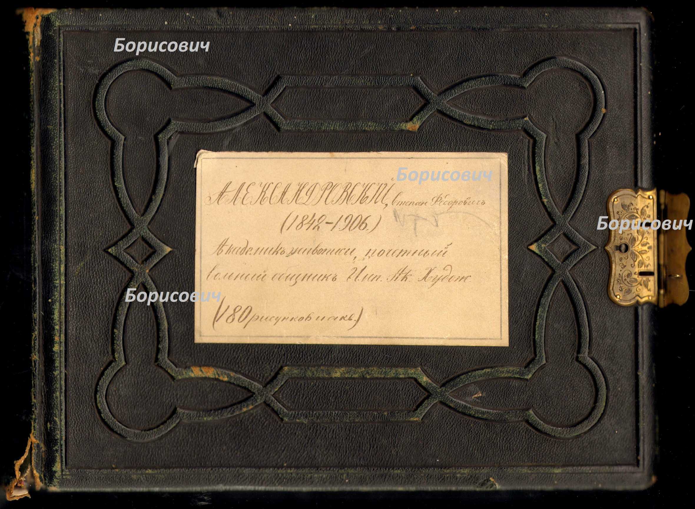 Предлагаю к продаже уникальный альбом с рисунками и акварелями академика Степана Федоровича Александровского (1842-1906). Академик портретной и акварельной живописи (с 1874 г.), почетный вольный общник Академии (в 1884 г.), один из основателей Общества русских акварелистов. Несмотря на известность и востребованность при жизни, творчество С. Ф. Александровского довольно слабо изучено и недостаточно популяризировано. Возможно, забвение произошло в годы советской власти, ведь большинство работ С. Ф. Александровского - это портреты элиты императорской России, иностранных представителей высшего света.